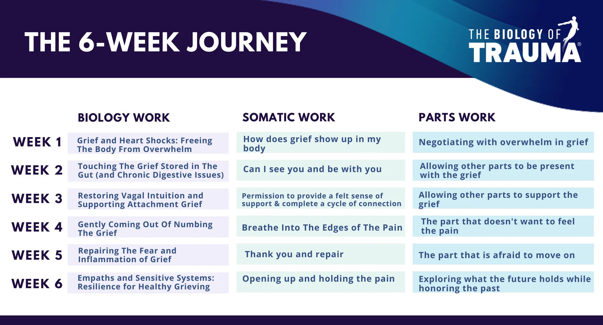 That missing piece became the Biology of Trauma® framework and an integration of psychology, somatics, and biology in the sequence the body needs to heal.